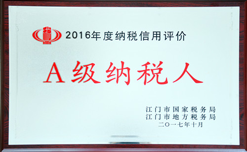 Qualification honorLocation: Homepage > About JNS > Qualification honor > A-class Taxpayer Rate Paying Credit Grade(2016)